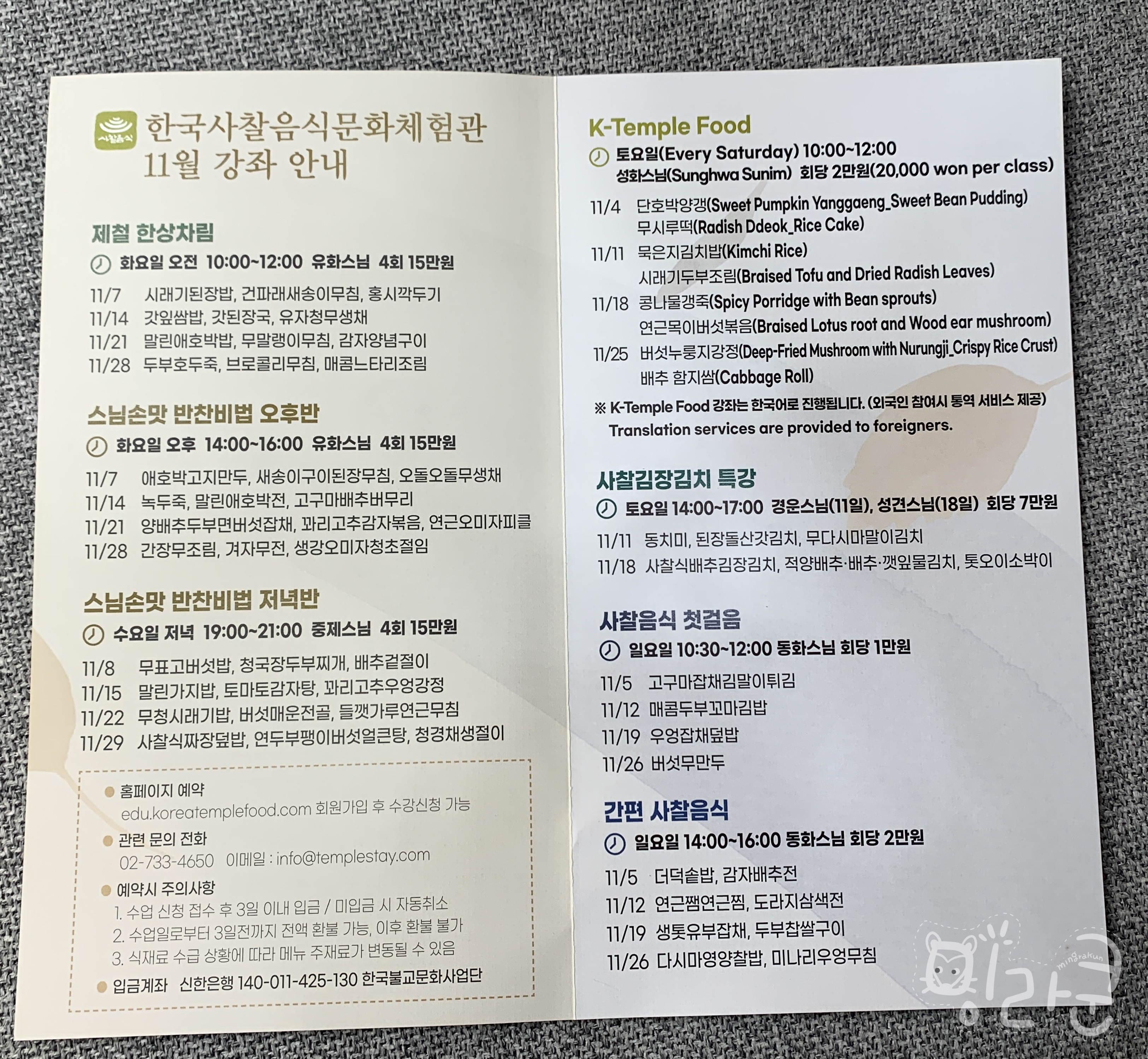 진행하는 다양한 정보와 사찰음식 레스토랑 안내 :)